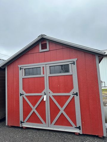 10'x12' Utility, double barn Doors, Red Siding/White Trim, With a Gable Roof Style